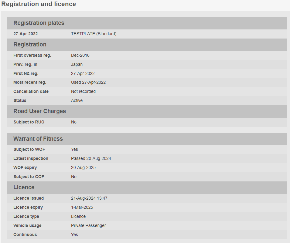 This report is available via the MotorWeb Portal and via API and is presented in a variety of sections.