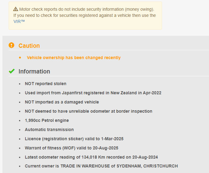 > Please note that MotorCheck does NOT include a check of the PPSR for financial securities